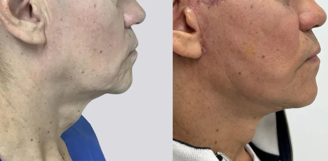 Pueden aparecer algunos morados, bultos y endurecimientos por delante y debajo de las orejas y atrás del mentón, los cuales desaparecen en pocos días, el resultado final se podrá apreciar hasta 2 meses después de la cirugía y la maduración de las cicatrices dura hasta un año.