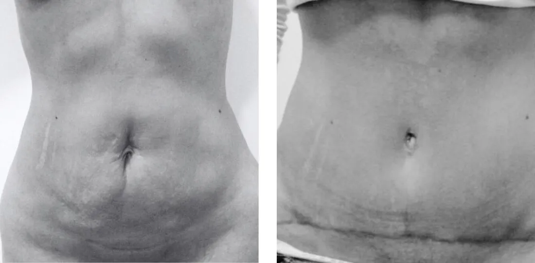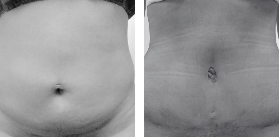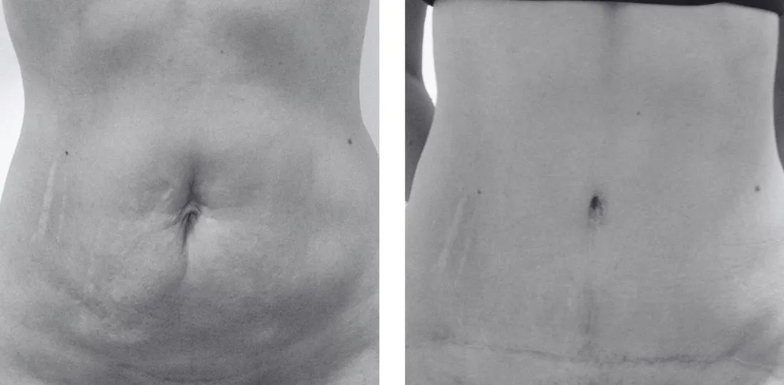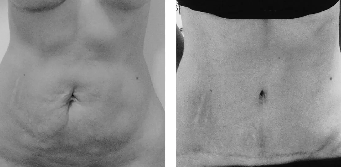 - Las cicatrices del ombligo y el abdomen mejoran significativamente con el tiempo.